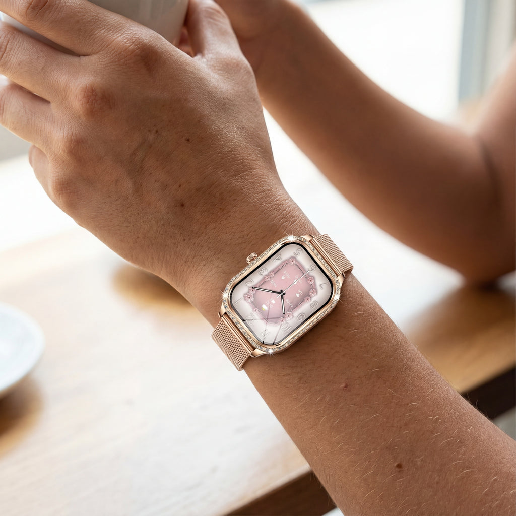 ¿Cansada de relojes grandes, incómodos o que no combinan? Luminia fue creado para mujeres que quieren verse increíbles, recibir notificaciones, y llevar control básico de su actividad… todo desde la muñeca. 💖